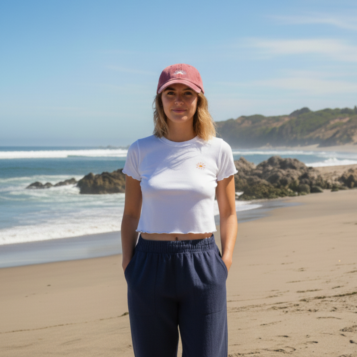 Su diseño es liviano y respirable, con ajuste trasero que se adapta fácilmente a distintos tamaños de cabeza. Una gorra pensada para acompañarte en movimiento, sin perder identidad ni conexión con el territorio.